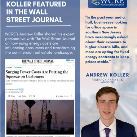 Wolf Commercial Real Estate (WCRE | CORFAC International) is proud to announce that Andrew Koller, Research Analyst and Advisor, was recently featured in The Wall Street Journal article, “Surging Power […]